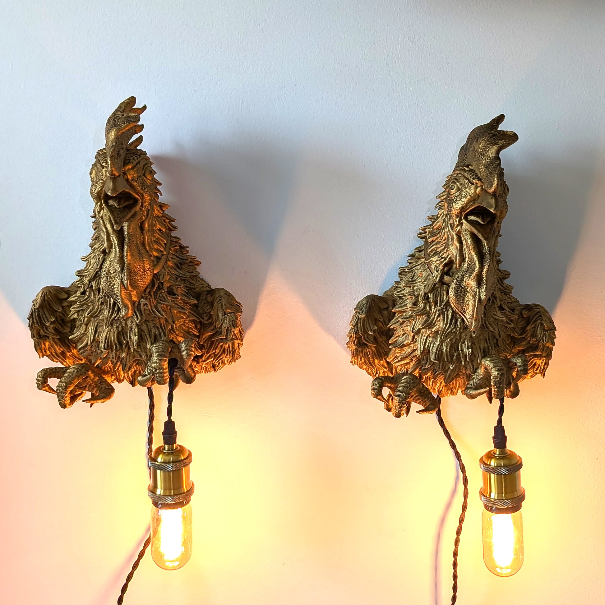 Rooster Wall Light – Vibrant and Unique Rooster Head & Bust Sconce for Farmhouse Decor, Kitchens, or Rustic Statement Lighting