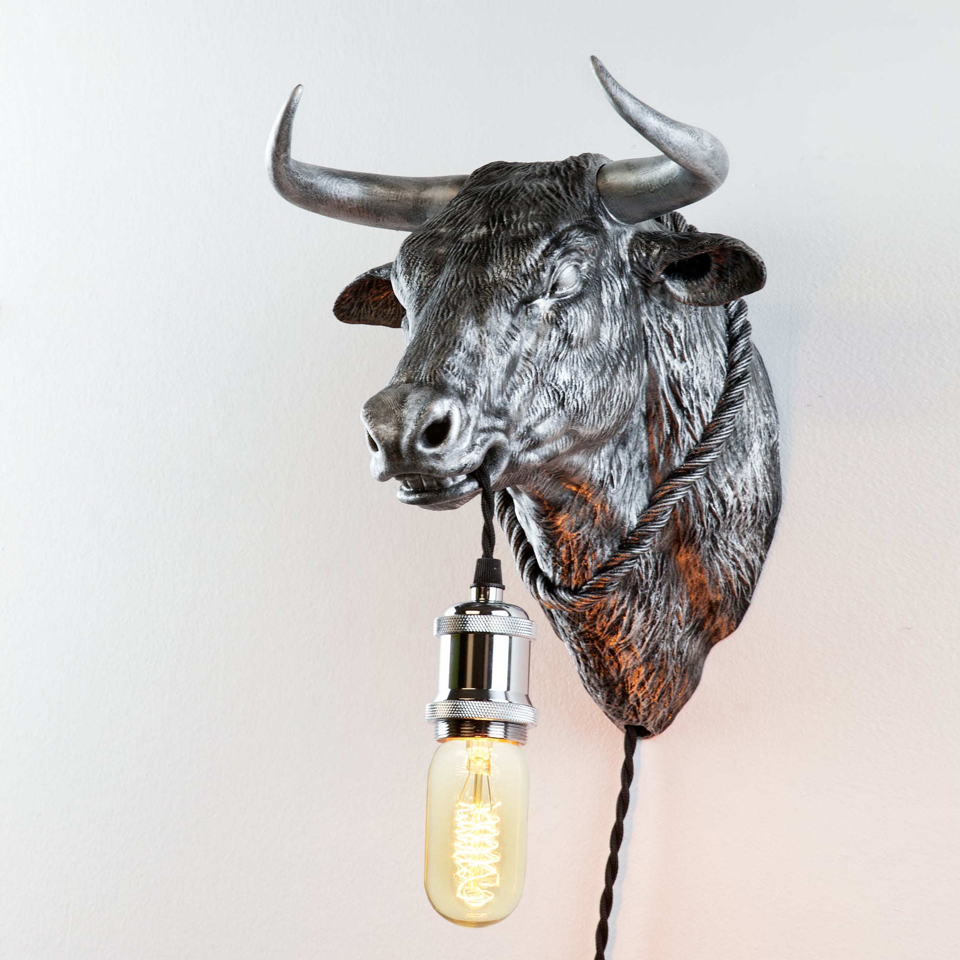 Enhance your space with the bold presence of this handcrafted bull head wall sconce. Perfect for steakhouses, bars, rustic-themed homes, or anyone looking for powerful and stylish wall lighting. A commanding centerpiece for any setting.